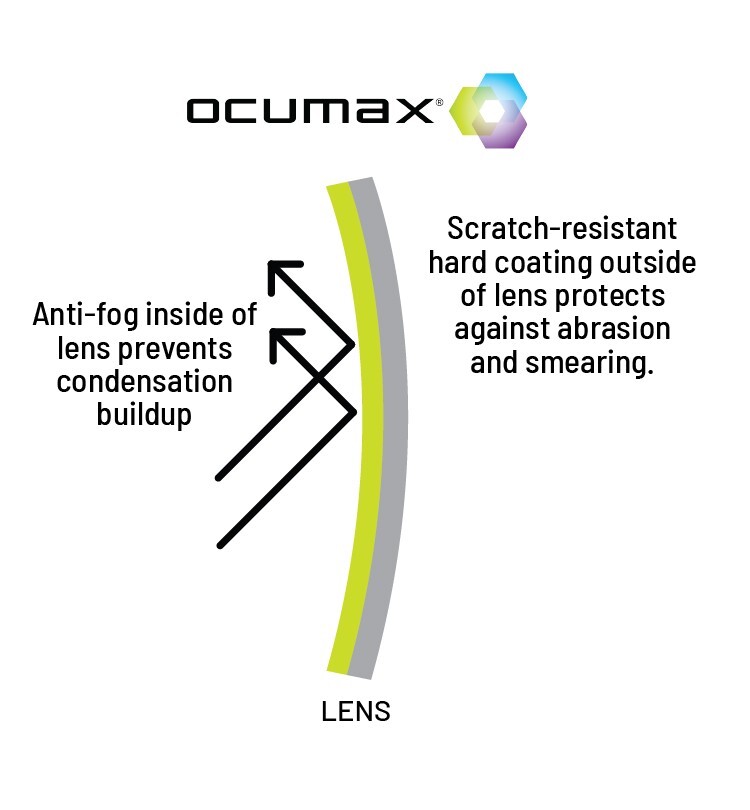 OcuMax® lenses stay fog-free for over 100 seconds—10x longer than competing coatings.